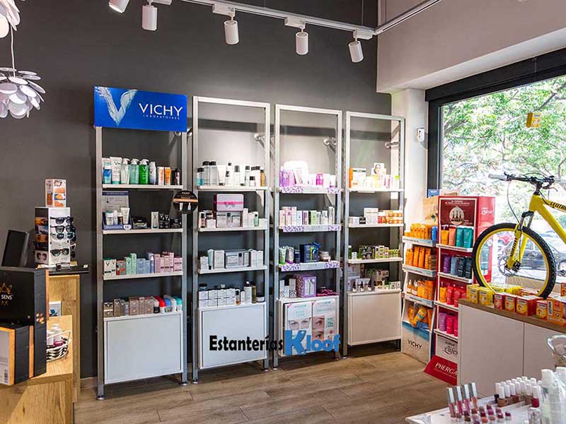 Disponemos de una amplia oferta de estanterías para todo tipo tiendas o negocios, fabricadas en hierro y madera ó cristal, ideales como farmacias, perfumerías, joyerías y parafarmacias etc.