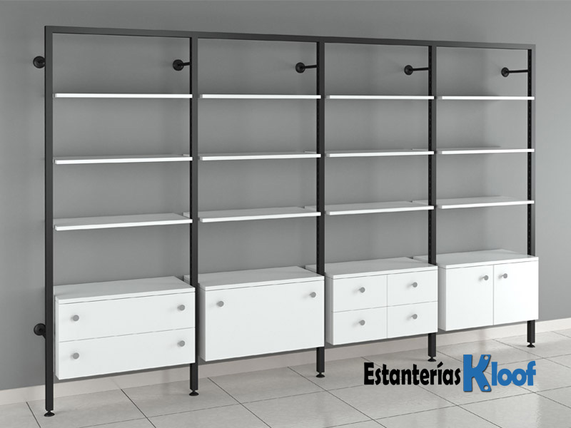 Con nuestra estantería para tiendas, podrás guardar tus productos y los podrás combinar en distintos elementos como los estantes de madera, buchs de puertas ó cajones.