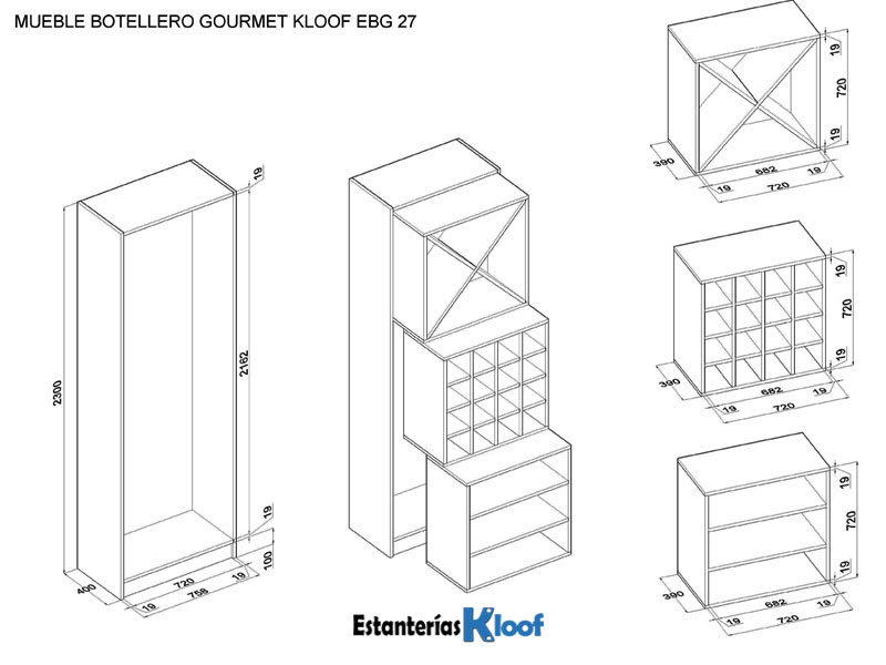 Botellero de madera y mueble para vino mod: Botellero Gourmet EBG 27